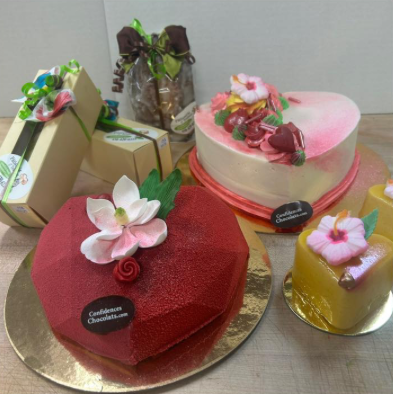 En entrant chez Confidences Chocolats, vous serez facilement séduit par notre vaste sélection de chocolats fins et par notre magnifique comptoir débordant de pâtisseries, aussi belles que délicieuses. Laissez-vous tenter par notre grande variété de pâtisseries fines et choisissez parmi les mousses au chocolat, au caramel ou aux fruits, les superbes et savoureuses viennoiseries ainsi que les majestueux gâteaux.